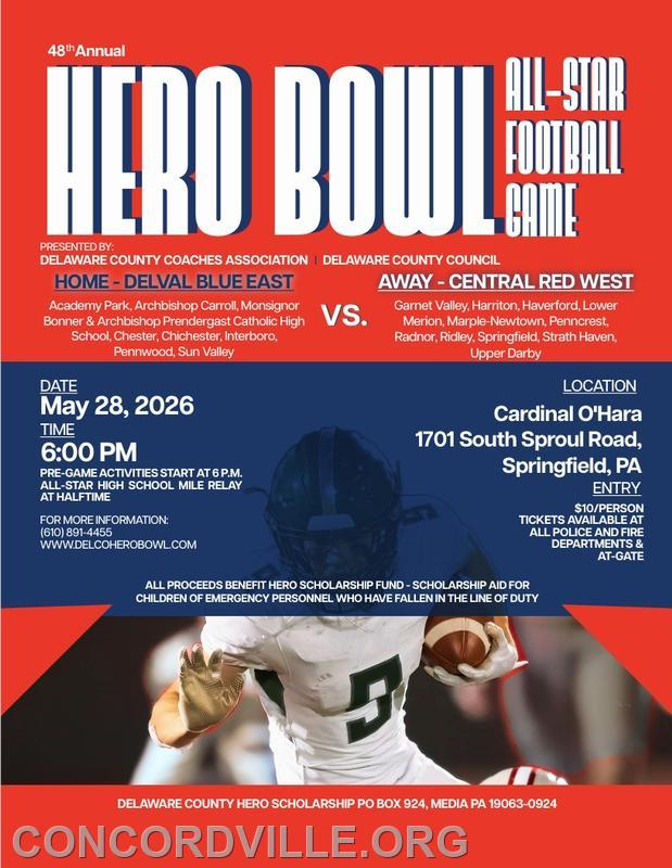 | Delaware County Council and Delaware County Coaches Association are putting on the 48th Annual Hero Bowl at Cardinal Ohara on May 28th.